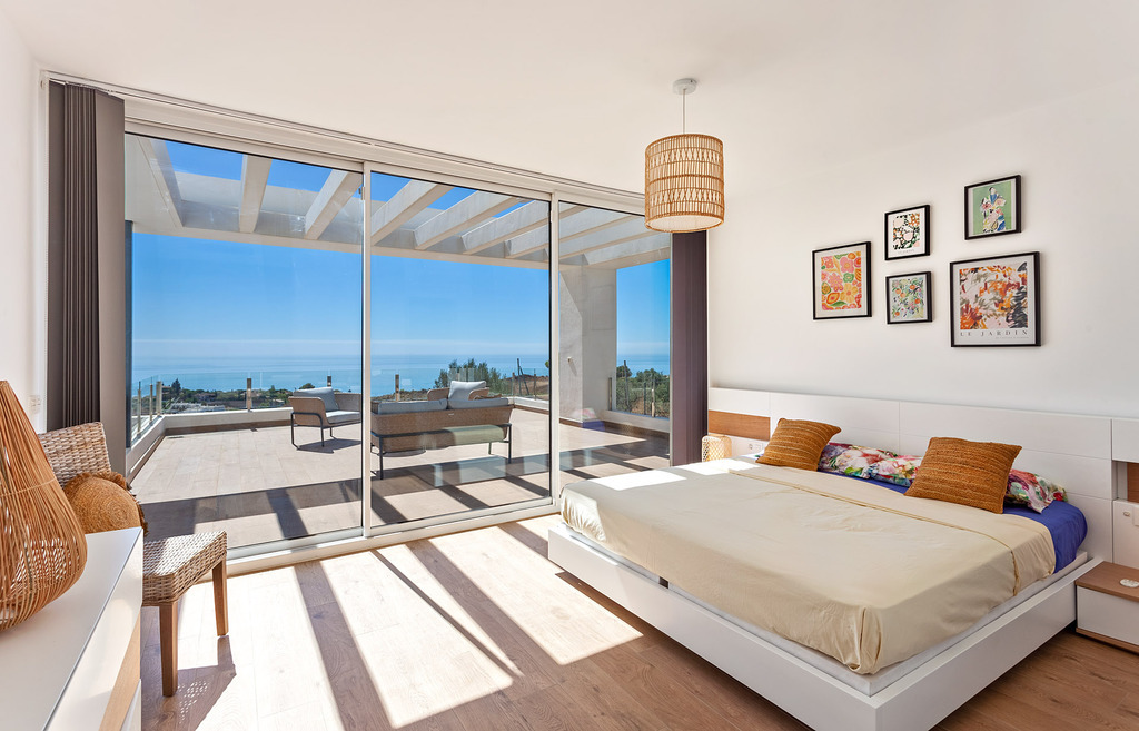 Im Obergeschoss findest du 3 Schlafzimmer, jeweils mit eigener Dusche/Toilette und Ankleidemöglichkeit. Der Master-Schlafraum ist an die über 30 Quadratmeter grosse Terrasse angebunden, von der aus du den Blick auf das Meer bewundern und die marokkanischen Küsten bei klarem Wetter sehen kannst. Hier kannst du den Tag mit einem Champagner oder Wein ausklingen lassen, die untergehende Sonne geniessen und deine Seele baumeln lassen.