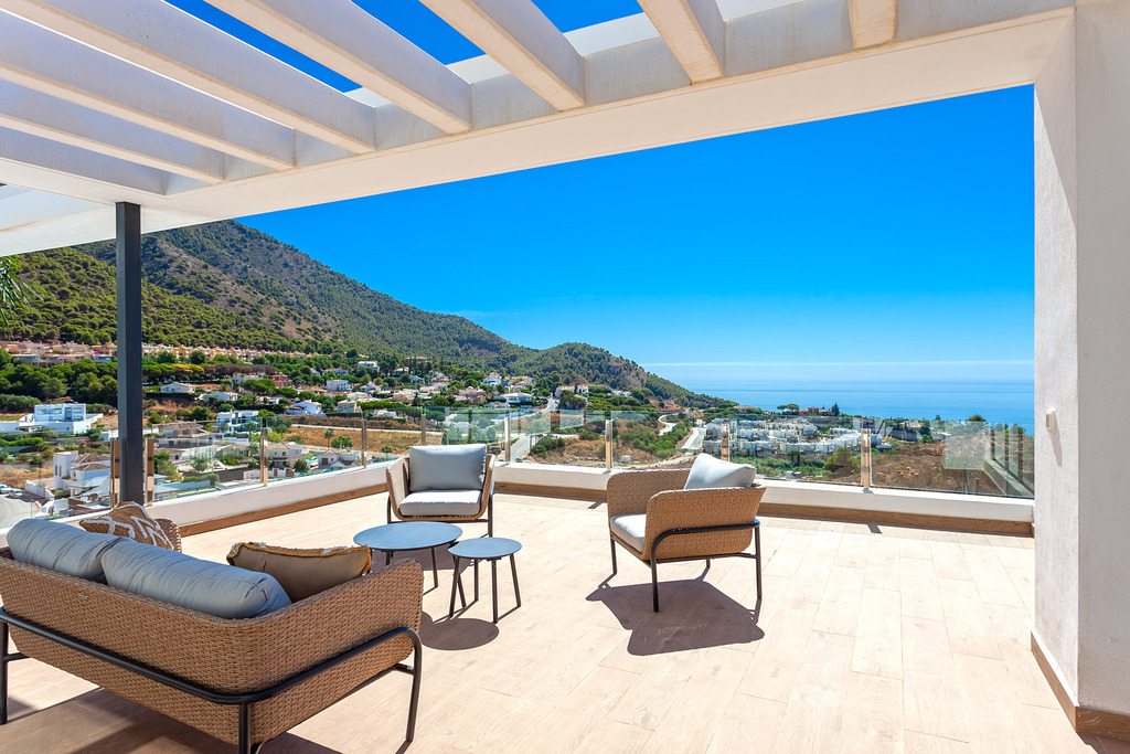 Auf den Höhen von Benalmadena, auf der Strasse zum malerischen Mijas Pueblo, ist das Haus auf einem Hügel in einem aufstrebenden Villen-Quartier gebaut. Diese privilegierte Lage bietet einen tollen Ausblick über das Mittelmeer und den Berg der Sierra de Mijas.