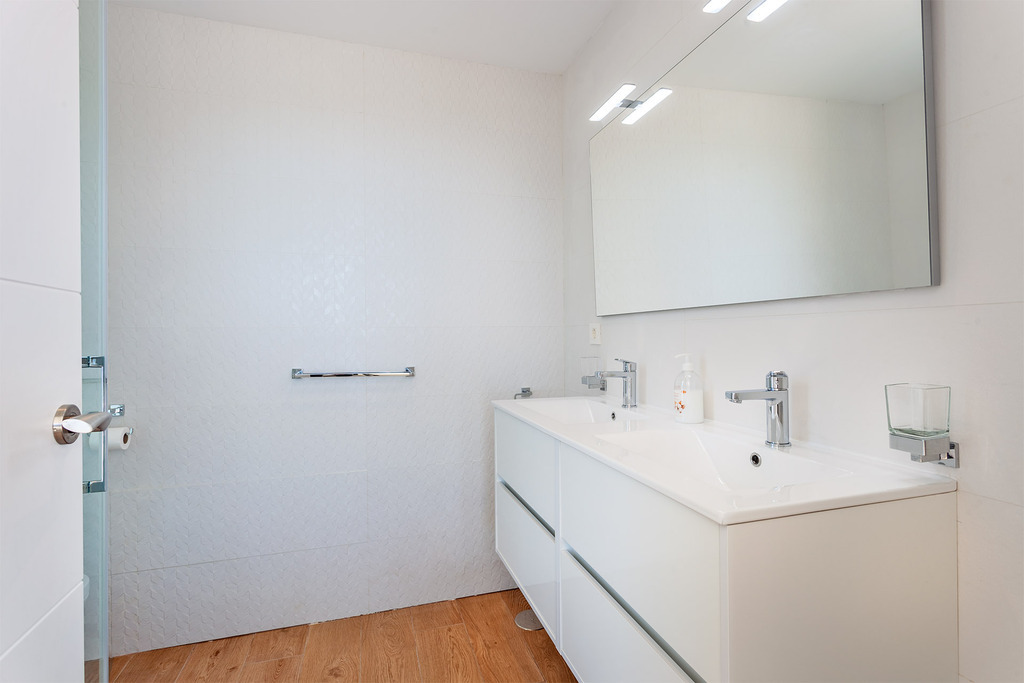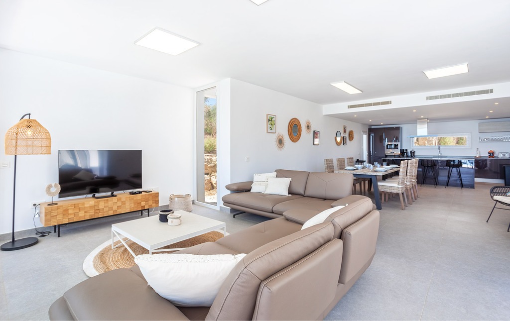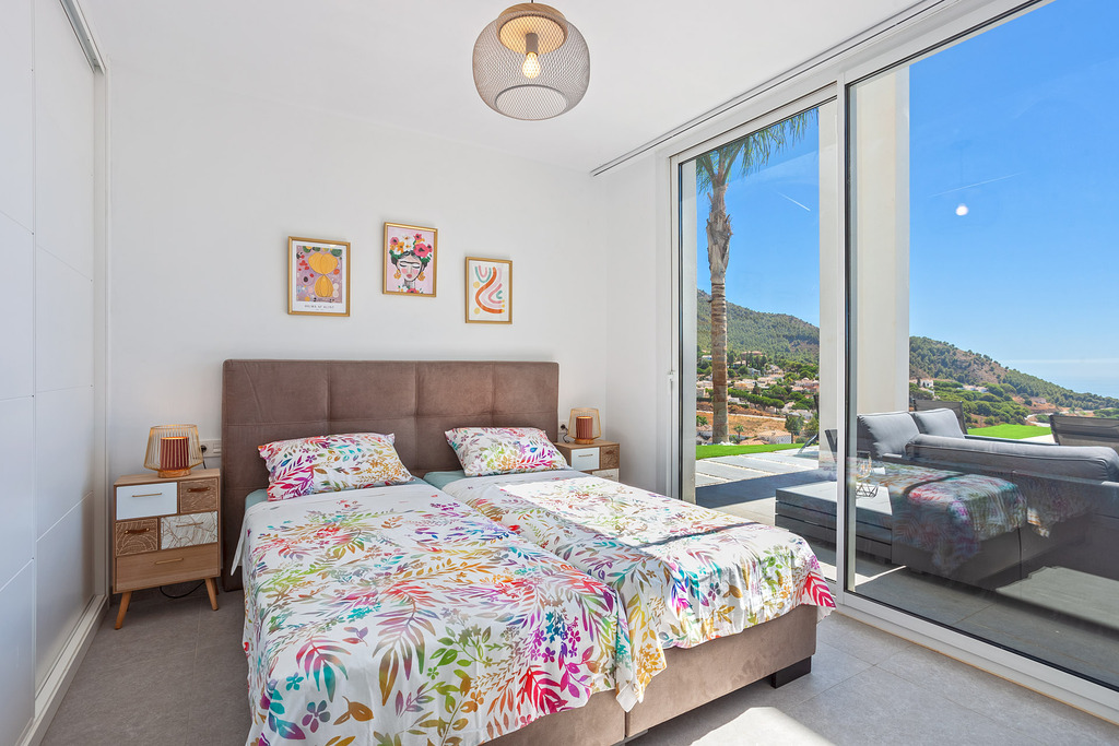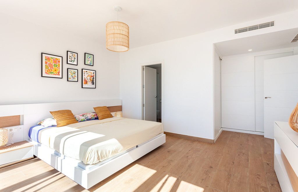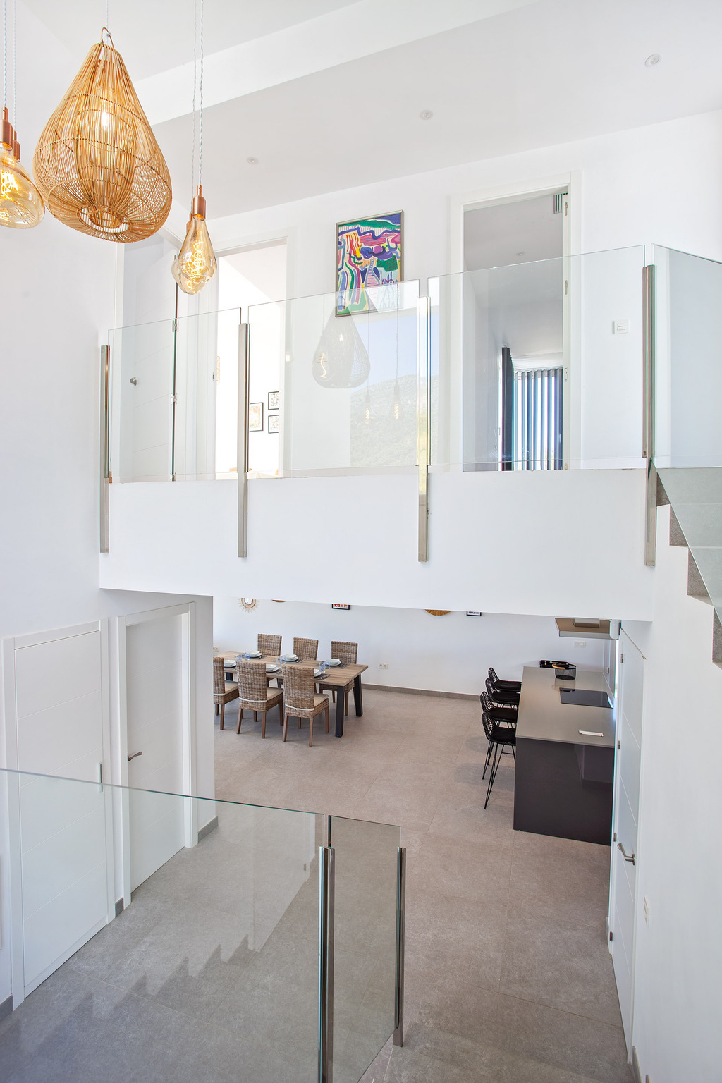 Im Obergeschoss findest du 3 Schlafzimmer, jeweils mit eigener Dusche/Toilette und Ankleidemöglichkeit. Der Master-Schlafraum ist an die über 30 Quadratmeter grosse Terrasse angebunden, von der aus du den Blick auf das Meer bewundern und die marokkanischen Küsten bei klarem Wetter sehen kannst. Hier kannst du den Tag mit einem Champagner oder Wein ausklingen lassen, die untergehende Sonne geniessen und deine Seele baumeln lassen.