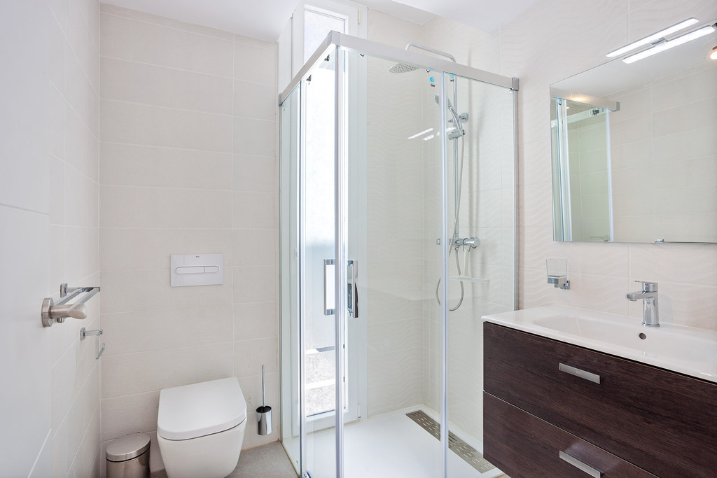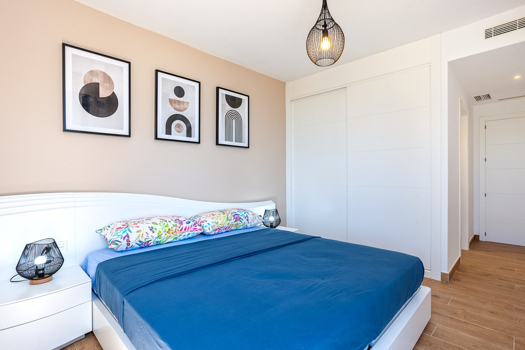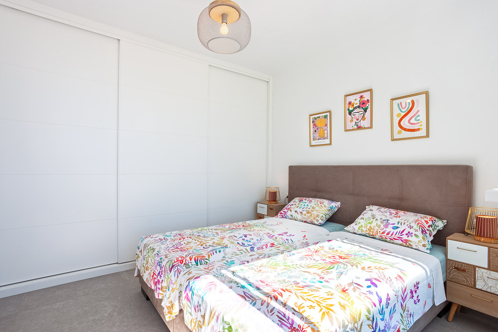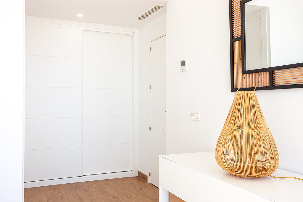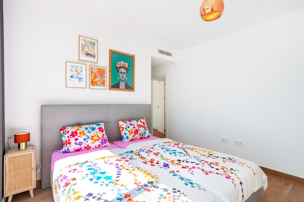 Im Obergeschoss findest du 3 Schlafzimmer, jeweils mit eigener Dusche/Toilette und Ankleidemöglichkeit. Der Master-Schlafraum ist an die über 30 Quadratmeter grosse Terrasse angebunden, von der aus du den Blick auf das Meer bewundern und die marokkanischen Küsten bei klarem Wetter sehen kannst. Hier kannst du den Tag mit einem Champagner oder Wein ausklingen lassen, die untergehende Sonne geniessen und deine Seele baumeln lassen.