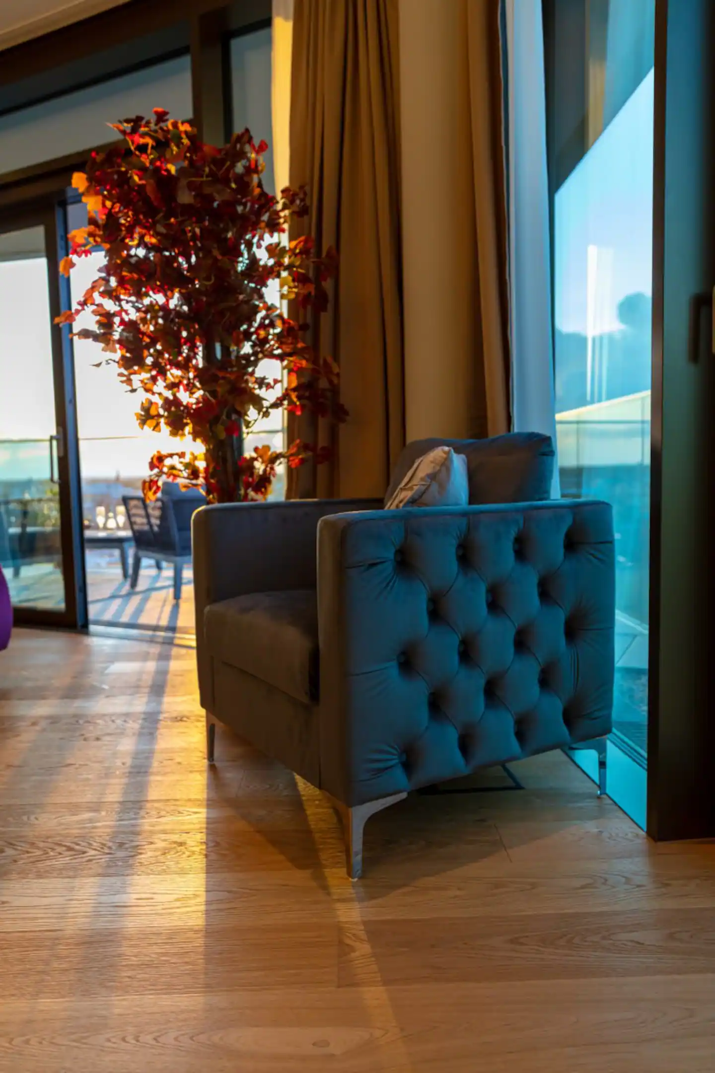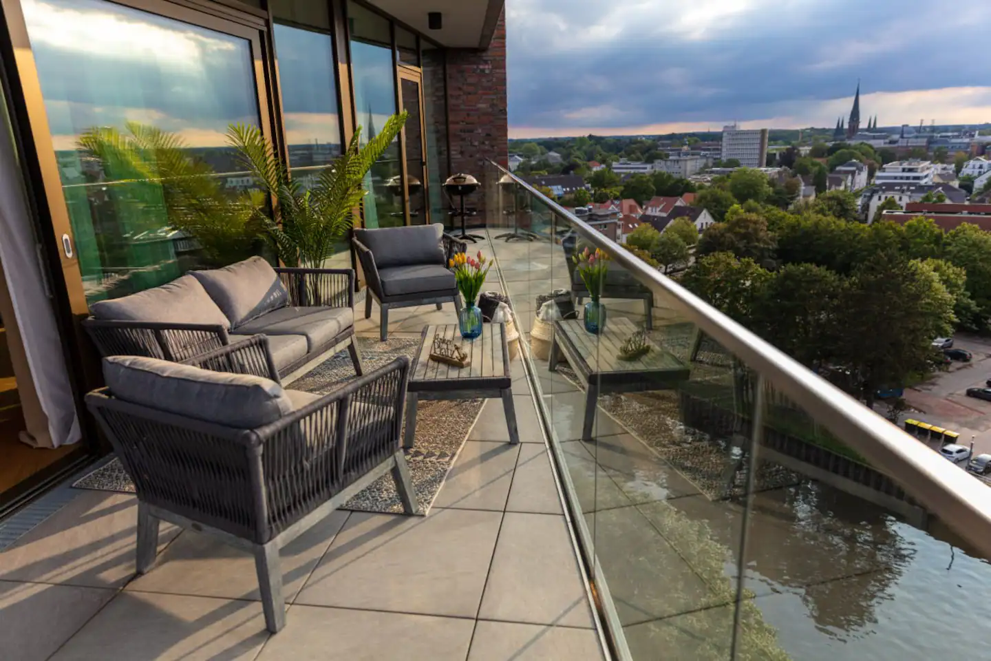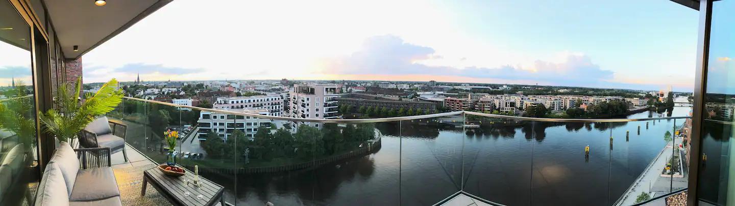luxuriöses Apartment in der 10. Etage befindet. Von hier überblickt man die Stadt und kann schon